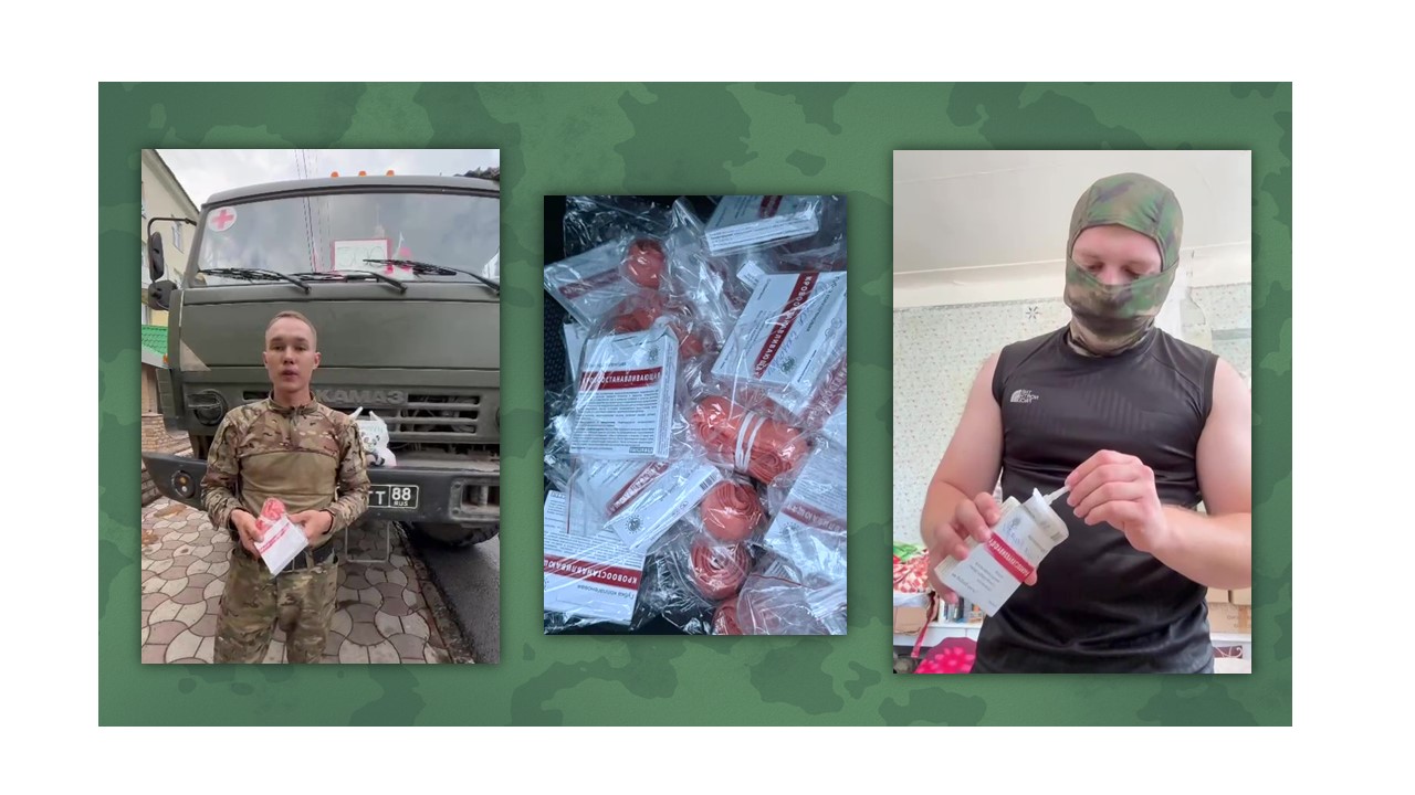 Портфель нашей компании располагает медицинскими кровоостанавливающими изделиями из нативного коллагена - Губка коллагеновая кровоостанавливающая. На фото солдаты с зоны действия СВО: солдат и медик 201 военной российской базы со словами благодарности.